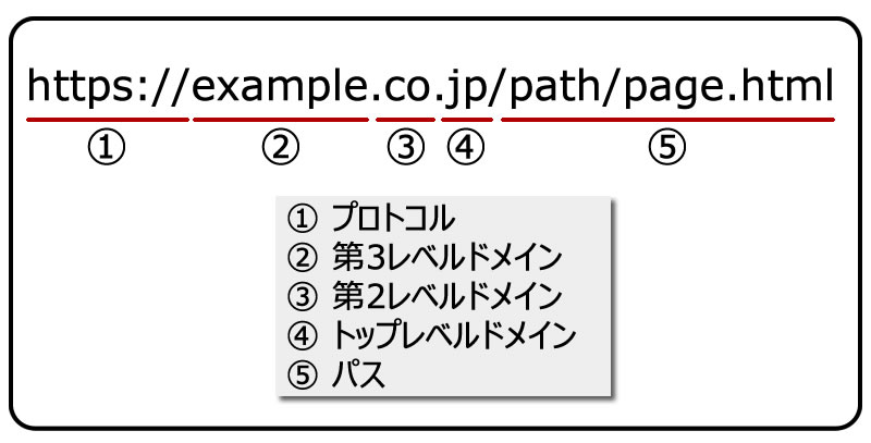 URLはいくつかの部分から成り立っていて、主に次のような構造となっています。
