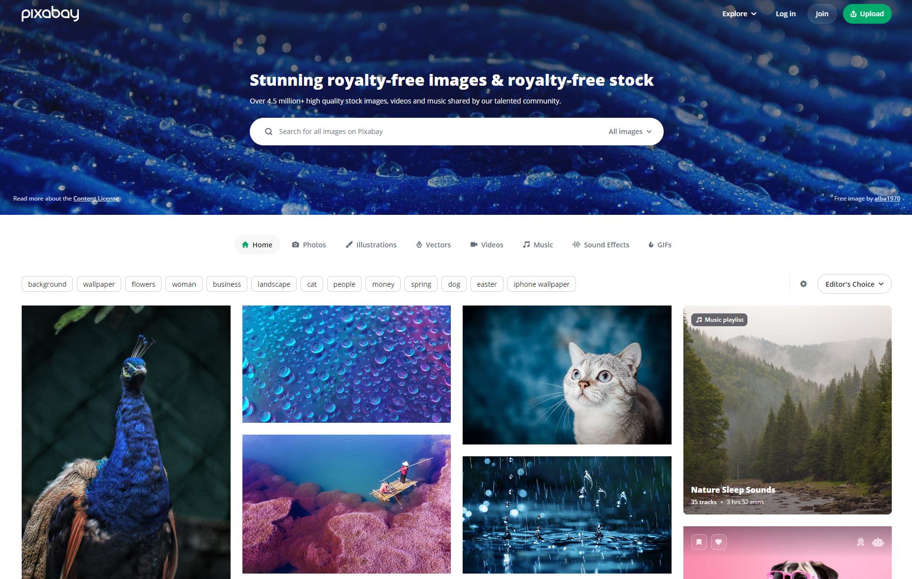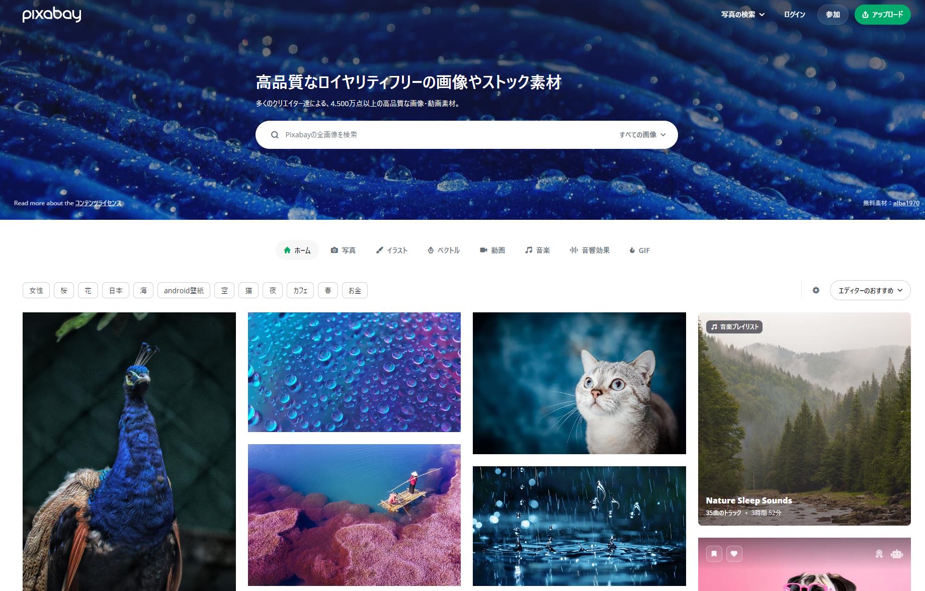 pixabayは4500万点以上の写真やイラスト画像をダウンロードできるフリー素材サイト。