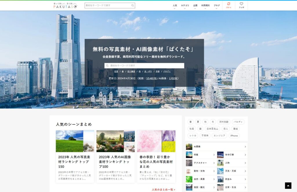 PAKUTASOは会員登録不要で商用利用可能なフリー素材サイト。5万点以上の作品が利用可能。