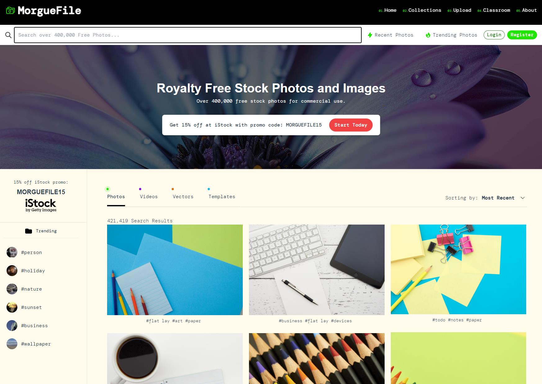 MorgueFileは40万点以上の画像がダウンロードできる英語の画像サイト。