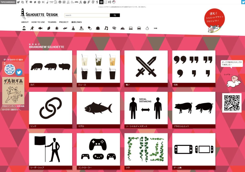 シルエットデザインは影絵の素材に特化したフリー素材サイト。