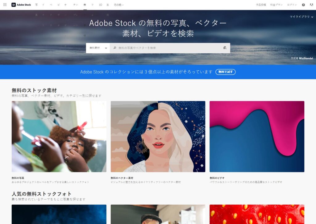 Adobe Stockはアドビシステムが運営する写真やベクター素材を無料ダウンロードできるサイトです。