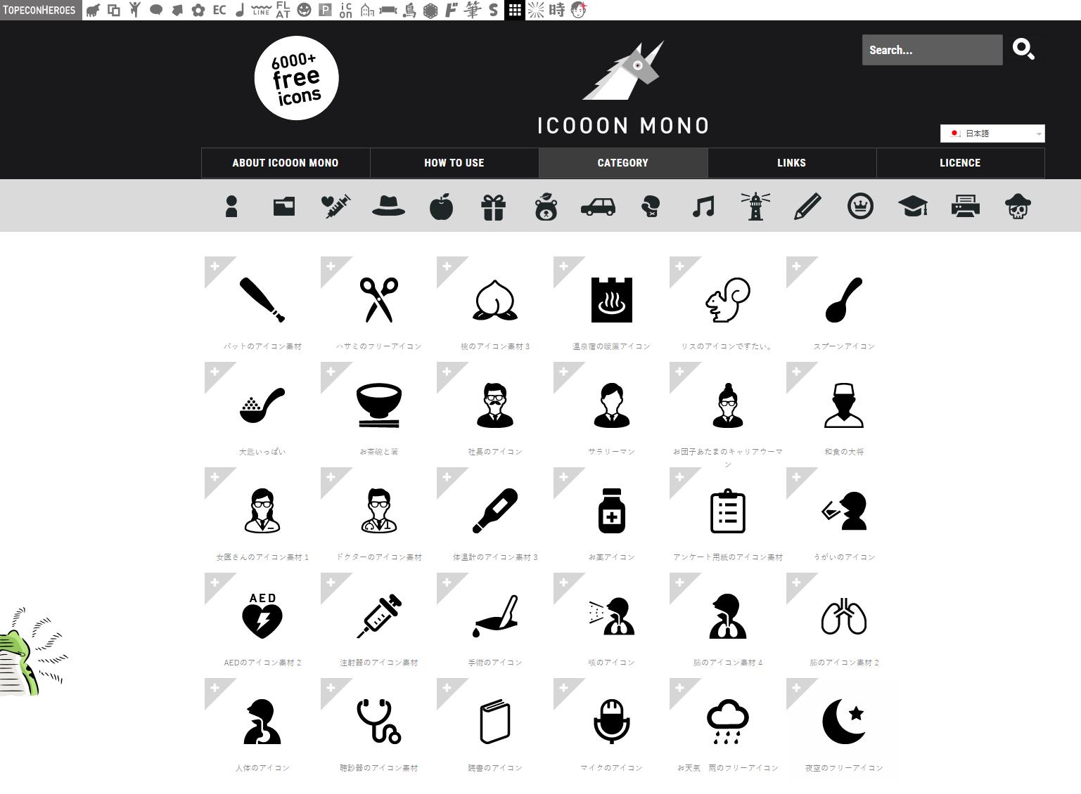 ICOOON MONOはモノクロアイコンに特化したフリーイラスト素材サイト。