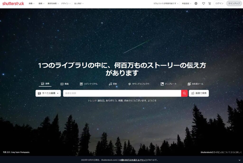 Shutterstockは4億8500万点以上の画像が集まる有料画像素材サイト。
