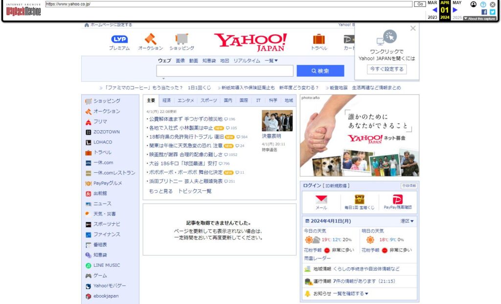 Internet Archive(インターネット・アーカイブ)とはウェブサイトの過去を無料で丸ごと閲覧することができるウェブサイトです。