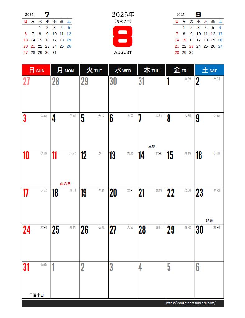 印刷 2025年8月の印刷用A4縦カレンダー 2025年8月の印刷用A4縦カレンダーです。 PDFデータをダウンロード後、印刷してご活用ください。 PDFデータをダウンロード Post Views: 3