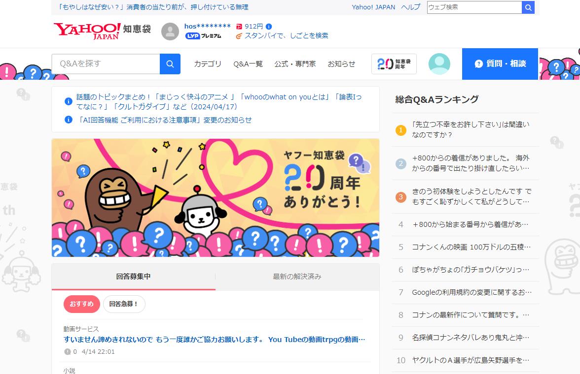Yahoo!知恵袋は個人が質問して答えるQ&Aサイトの最大手です。