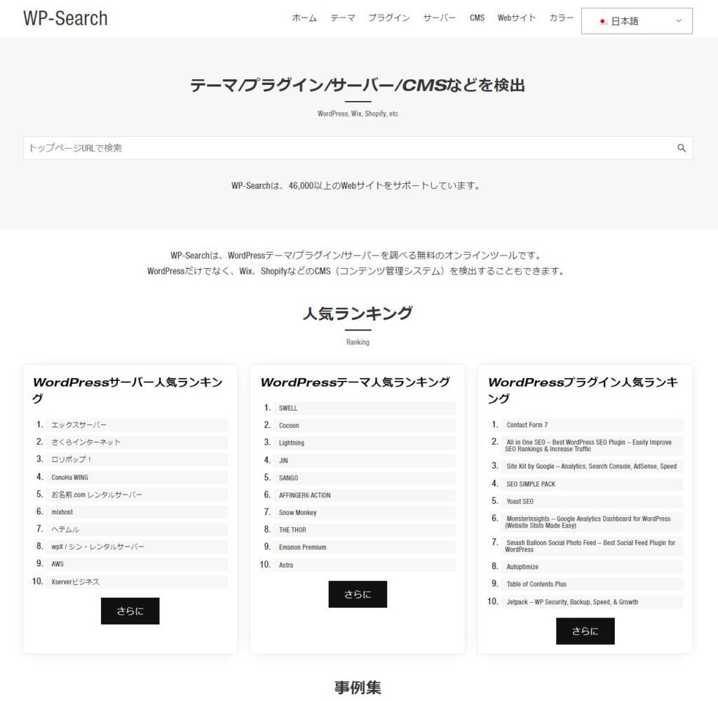 「WP-Search」もも利用されているワードプレスを調べるための検索サイトですが、貴重な日本語サイトになっています。